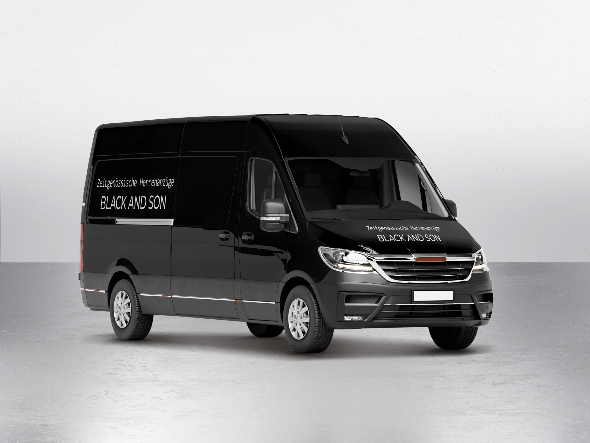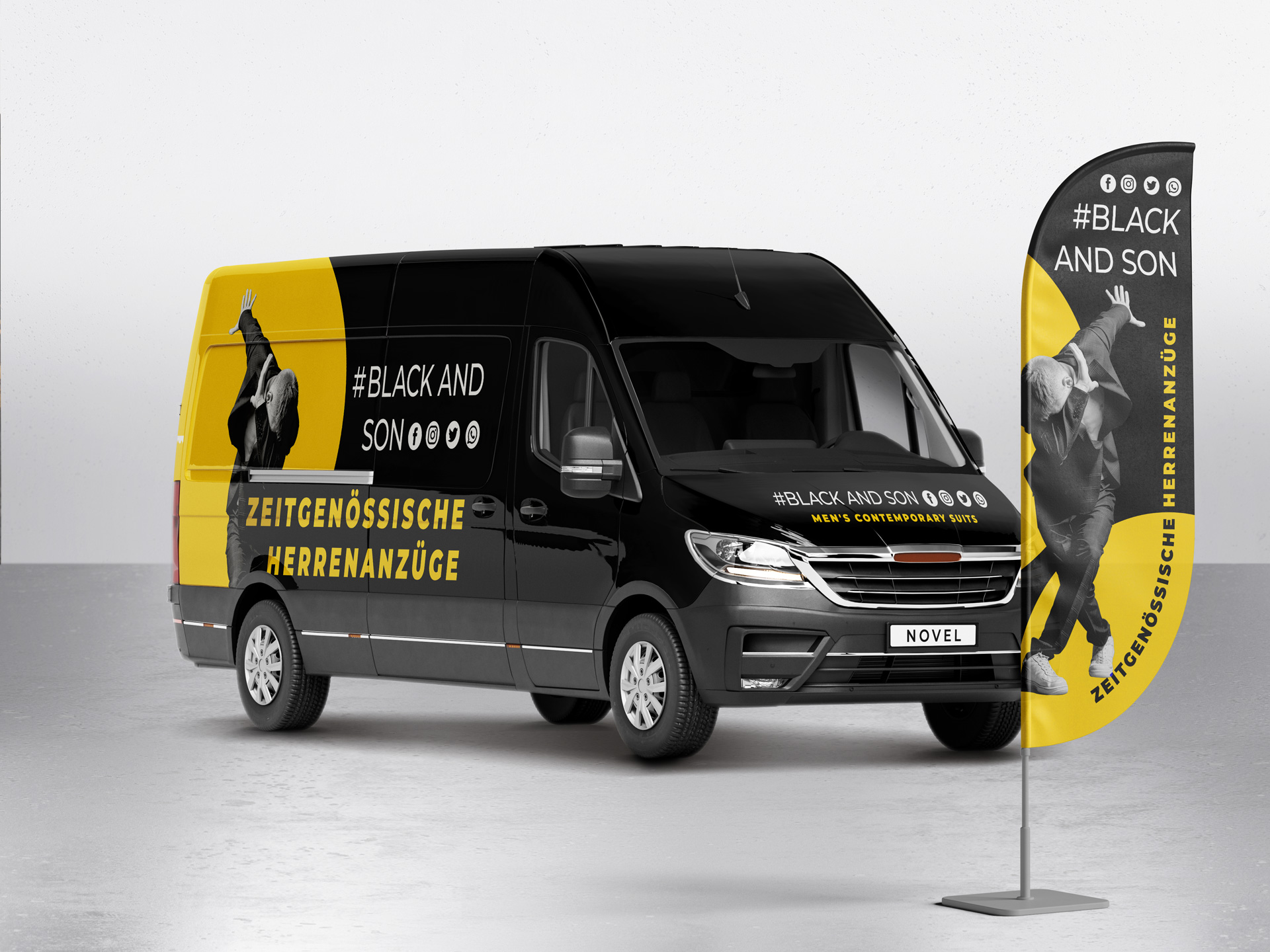 Fahrzeugbeschriftung und Werbeflagge für Black and Son.