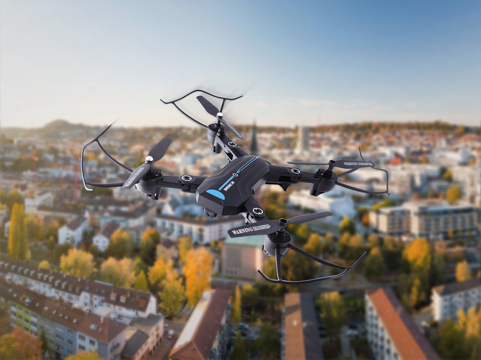 Bildbearbeitung und Fotomontage für ein Produktfoto einer Drohne.